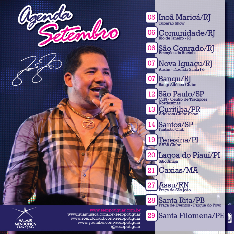 Confira a agenda completa Zezo Potiguar para o mês de Setembro