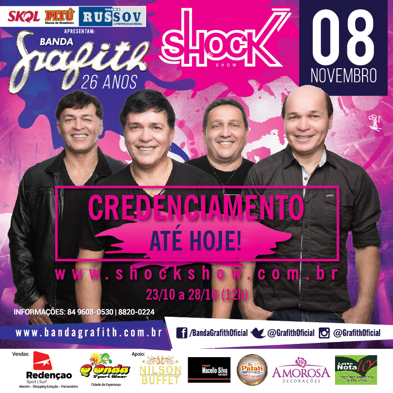 Acesse: http://shockshow.com.br, vá em NOTÍCIAS e confira os requisitos para o credenciamento de imprensa que segue até as 12h de hoje (28). #Credenciamento #Imprensa #Grafith26Anos #ShockShow