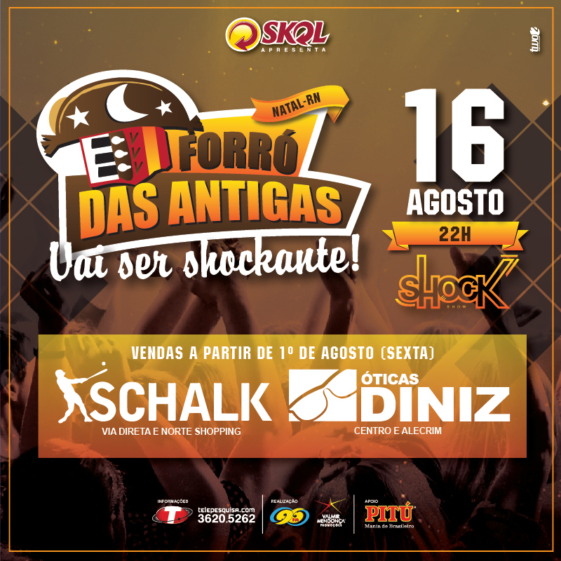 Vendas a partir de AMANHÃ (01) na Schalk (Via Direta e Norte Shopping) e Óticas Diniz (Centro e Alecrim). Informações: @telepesquisa 3620-5262 e www.shockshow.com.br. #VaiSerShockante!