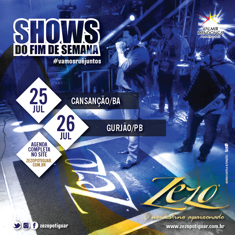 SHOWS DO FDS - Zezo - 25 e 26 de Julho